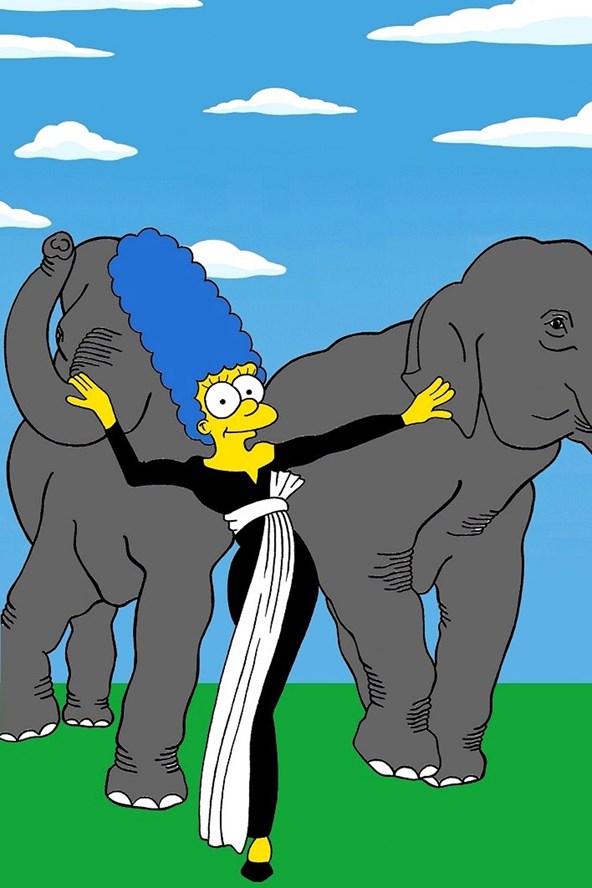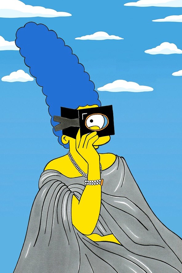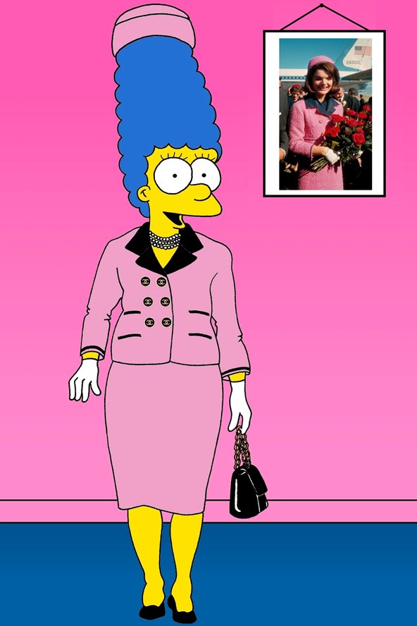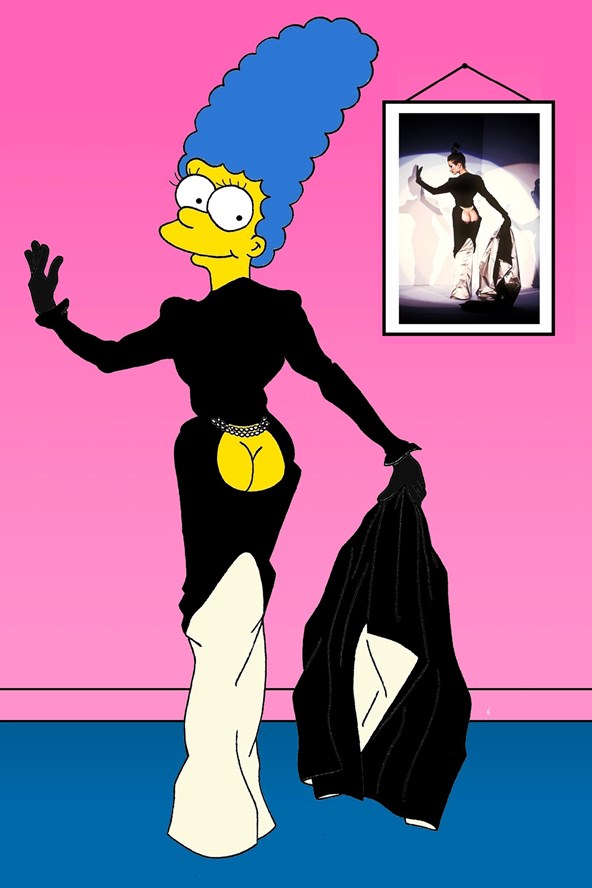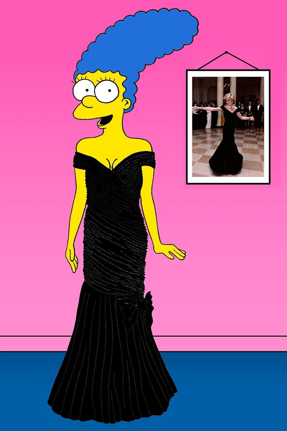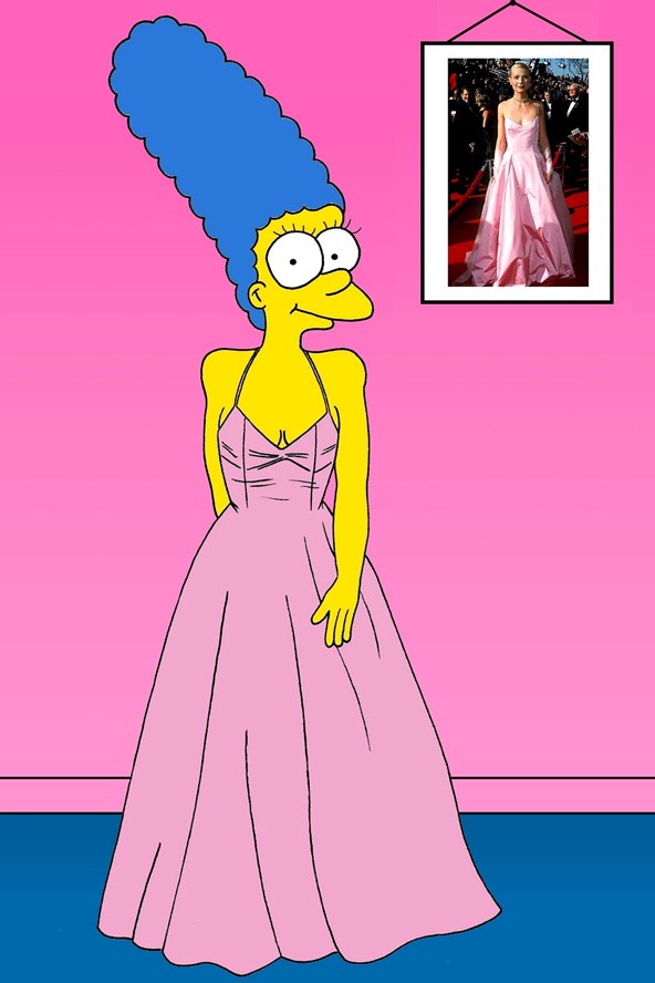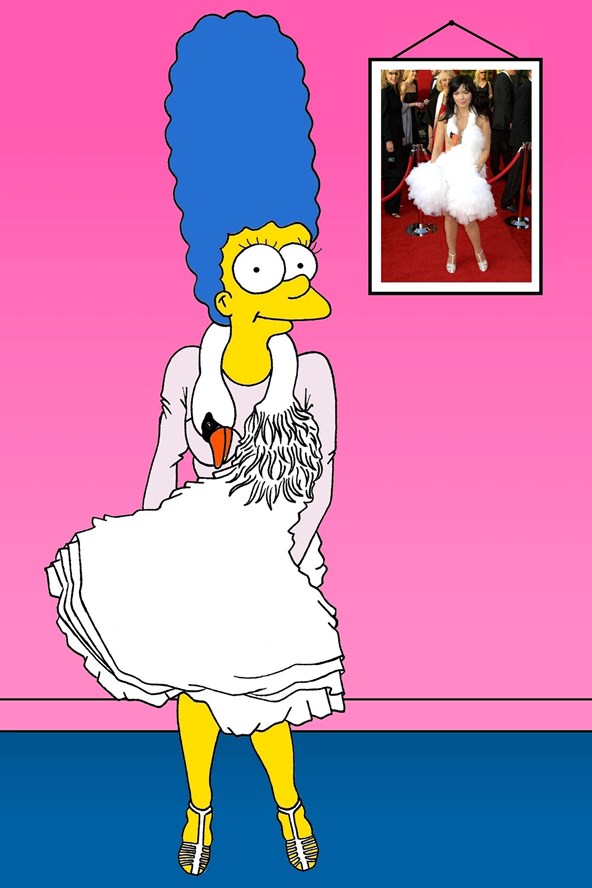На созданных художником рисунках супруга главного героя мультсериала «The Simpsons» Гомера, Мардж запечатлена, например, в белом платье-лебеде, в котором певица Бьорк прибыла на церемонию вручения премии Oscar в 2001 году, в черном платье с булавками от Versace — в нем Элизабет Херли была на премьере фильма «Четыре свадьбы и одни похороны» в 1994 году, в платье с принтом Union Jack (флаг Великобритании) участницы Spice Girls Джери Холлиуэлл (BRIT Awards, 1997 год), синем наряде Кейт Миддлтон для фотосессии по случаю ее помолвки, в корсете-бюстье от Жана Поля Готье для Мадонны, в знаменитом твидовом костюме Коко Шанель и многих других легендарных нарядах.